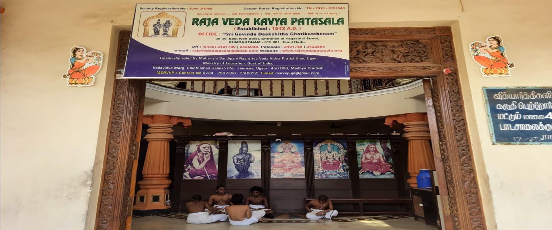 Sri Govinda Deekshithar established this Patasala on the southern banks of the river Cauvery, in the year 1542 A.D. with the prime aim of imparting the knowledge of VEDAS and Sastras. This Patasala is continuing its services for the past 480 years without interruption.